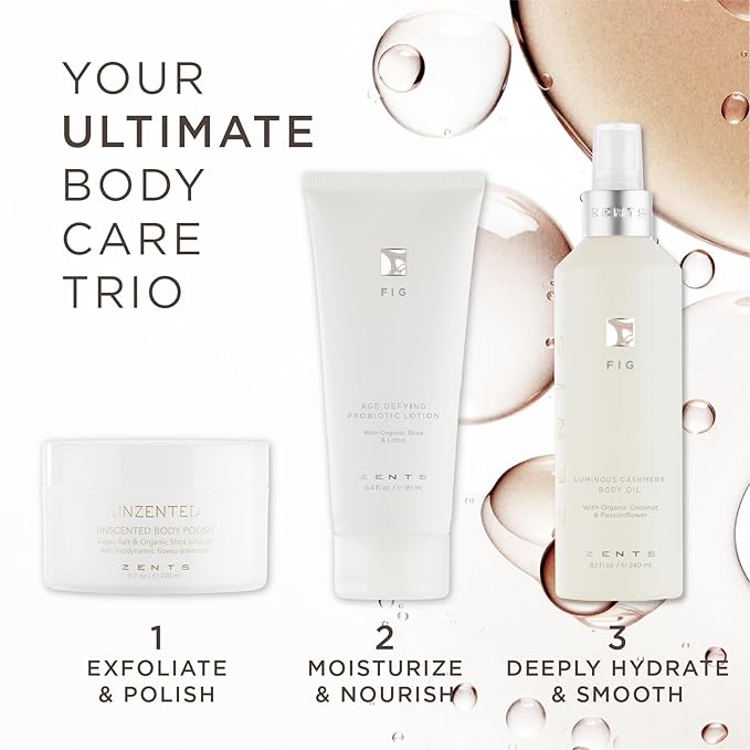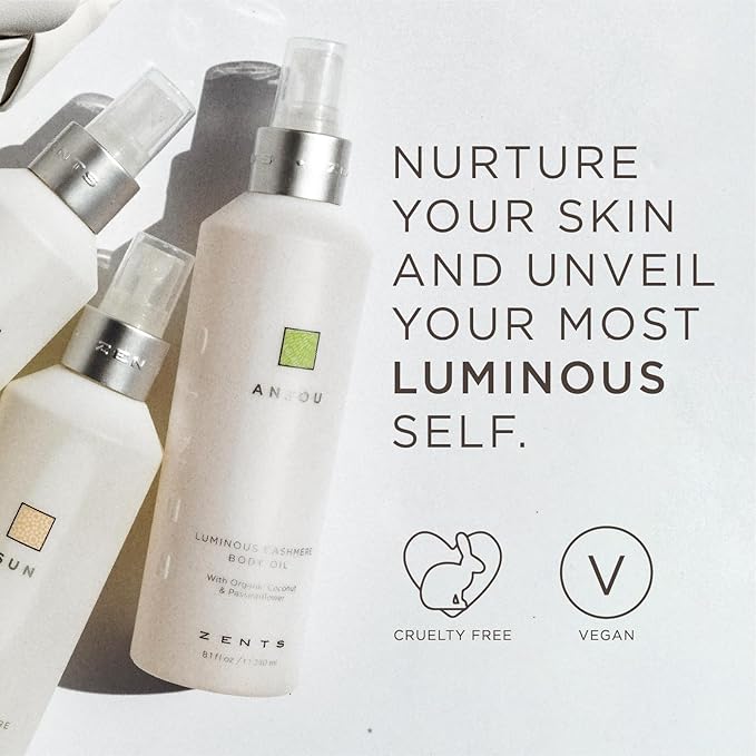 Zents Luminous Cashmere Body Oil (Fig Fragrance) | Moisturizing Body Oil with Vitamin E & Organic Coconut Oil | Softens & Smooths Skin | 8 fl oz