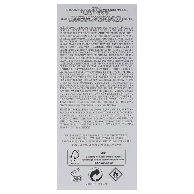 - Scent : Tobacco, Musk, Vanilla, Vetiver, Tonka Bean