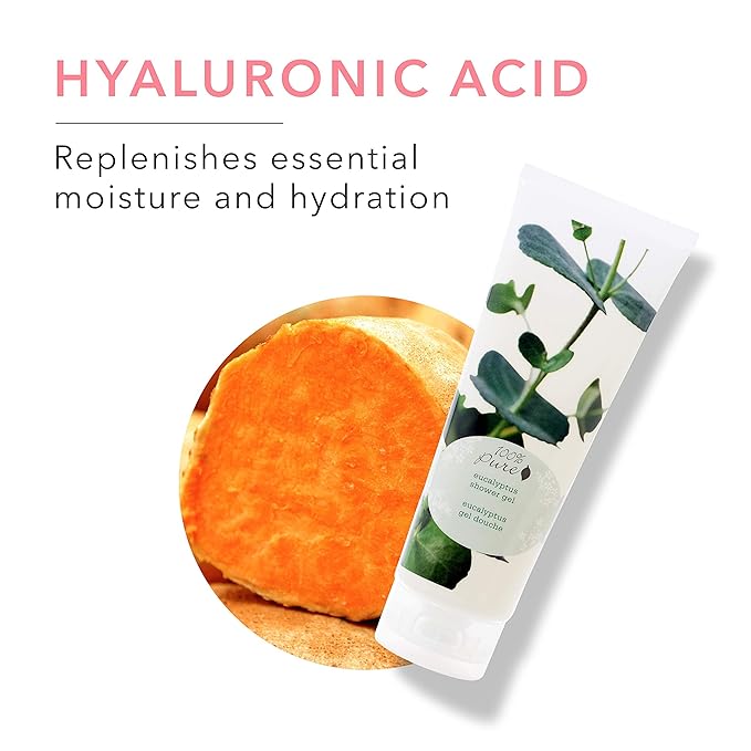 100% PURE Eucalyptus Shower Gel Natural Foaming & Hydrating Body Wash - Deeply Moisturizing Gentle Soap Cleanser for All Skin Types, Even Sensitive - Gluten-Free - 8 Fl Oz