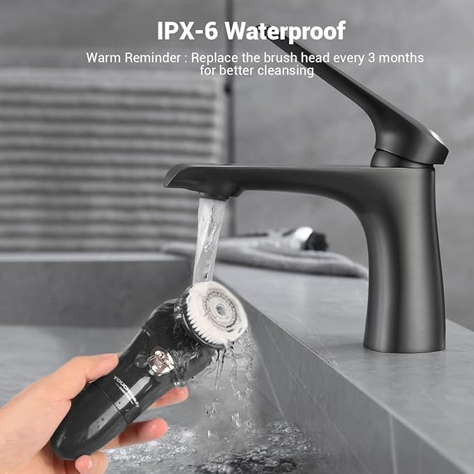 - IPX6 LEVEL WATERPROOF DESIGN: you can use our facial brush safely in the shower or bath and clean it under running water to avoid accumulation of dirt. Powered by AAA 1.5V x 2 Batteries (Not included)