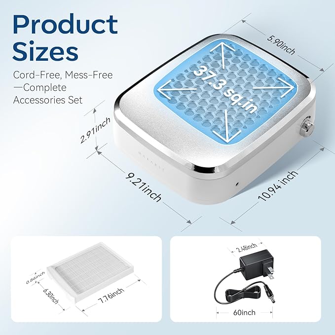 - Long-Lasting Battery Life: Built-in 2200mAh lithium battery, the nails dust collector fully charges in 2 hours and runs for up to 5 hours. It must use the original charging adapter and compatible with 100-240V