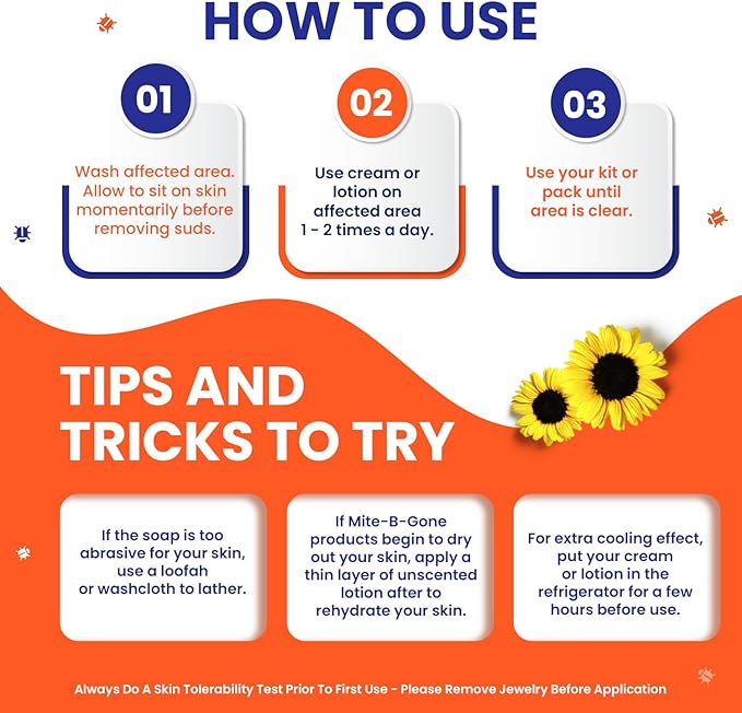 - Mite-B-Gone Lotion gives you lasting relief WITHOUT harsh chemicals or irritation