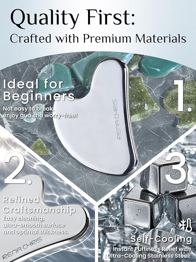 - BEST FOR BEGINNERS: Rena Chris metal gua sha tools are crafted from 100% premium stainless steel. Their durability and self-cooling properties make them ideal for all skin types, offering a seamless introduction to gua sha