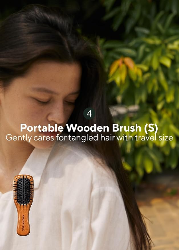 AROMATICA Rosemary Scalp Scaling Trial Kit - Travel Size Korean Hair Care Kit for Women with Mini Wooden Brush, Gentle Exfoliating Scalp Care for Hair Growth Product, with Rosemary Oil & Vegan Formula