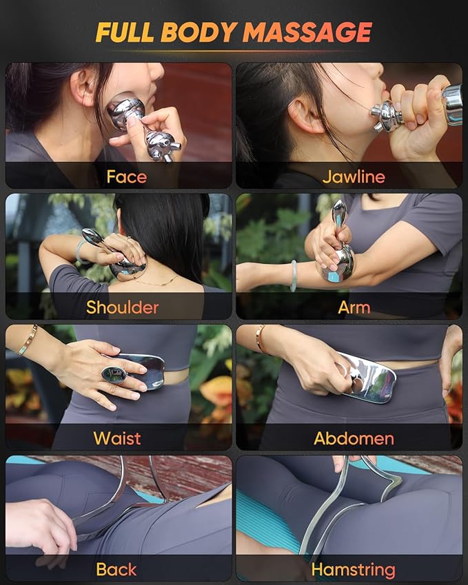 - PROFESSIONAL STANDARD & OPTIMAL EFFECT: Trusted by Athletes Trainers, Chiropractors, Physical and Massage Therapists. Use our 4-in-1 metal massage tools for 10 minutes daily to see optimal results. Whole body use β face, neck, shoulders, arms, abdomen, back, waist, thighs and calves