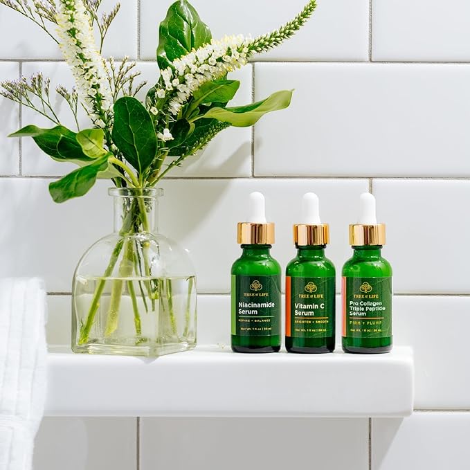 Tree of Life Beauty Skin Care Set, Brightening, Firming, Dry Face, Dermatologist Tested - Complete Hydration Trio, Vitamin C Serum, Niacinamide Serum, Pro Collagen Peptide Serum, 3 count of 1Fl oz