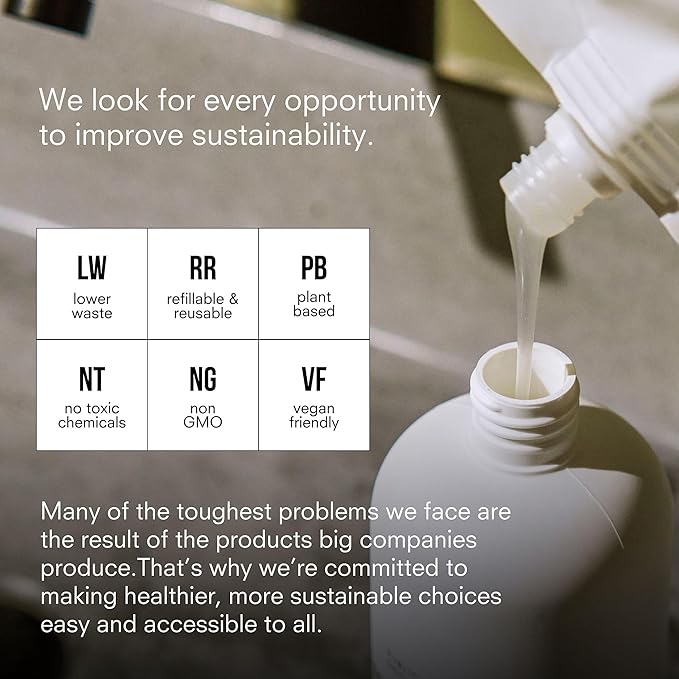 • Less Waste - Designed with sustainability in mind, our 34 ounce body wash is ideal for refilling our 12 ounce bottle or one of your own.