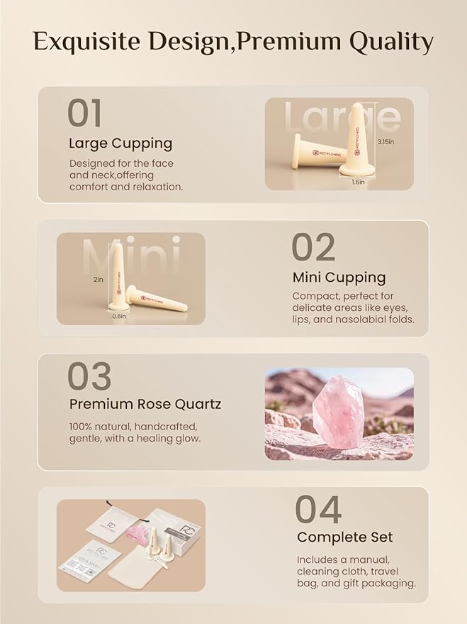 - WHAT YOU GET: Facial cupping therapy set *1, rose quartz gua sha board *1, instructions for use *1, cleaning cloth *1, portable travel bag *1, exquisite packaging*1