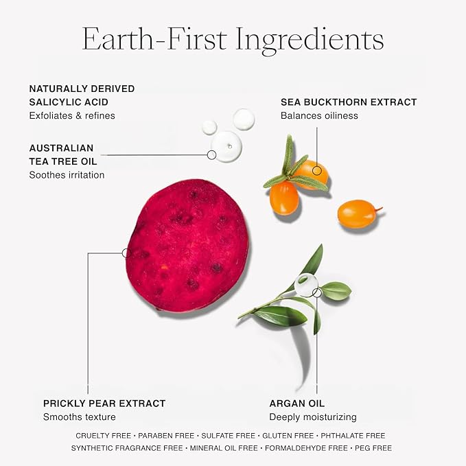 - The Multi-Tasking Facial Exfoliator That Hydrates & Soothes - This gentle gel cleanser formula lathers with water, plant-based surfactants to flush out dirt and other impurities, all while potent medicinal botanicals manage a host of skin challenges. This salicylic acid cleanser gently exfoliates to smooth skin texture while calming sea buckthorn oil supplies moisturizing omegas to soothe and balance oily skin.
