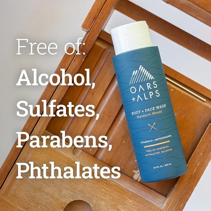Oars + Alps Mens Moisturizing Body and Face Wash, Skin Care Infused with Vitamin E and Antioxidants, Sulfate Free, Mandarin Woods, 13.5oz, 1 Pack