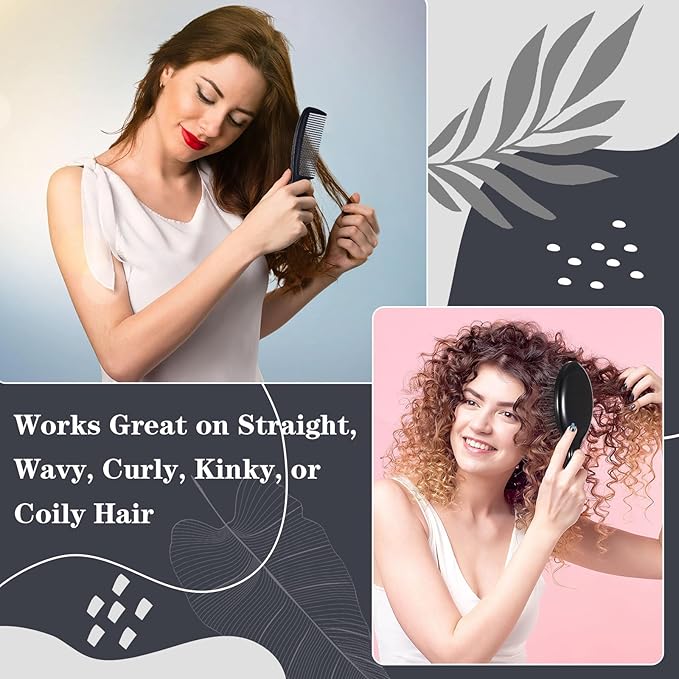 - Reliable Material and Multifunctional: with a size of approximately 5.5 x 2.36 x 1.57 inches and 1.34 x 5.67 x 0.12 inches respectively; The small brush and comb set is made from nylon and plastic material is suitable for straight, wavy, curly, kinky hair; Also, effective in eliminating flyaway hairs and frizz as well as stimulating hair follicles to promote hair growth through its massage like abilities, and they are flexible and not easy to break