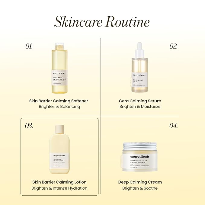 ONGREDIENTS Skin Barrier Calming Lotion | Lightweight Moisturizer for Dry, Sensitive Skin | Centella, 9-Peptide Complex, Glucose, Soothing, Calming, Hydrating | Vegan, Korean skincare (7.43 fl Oz)