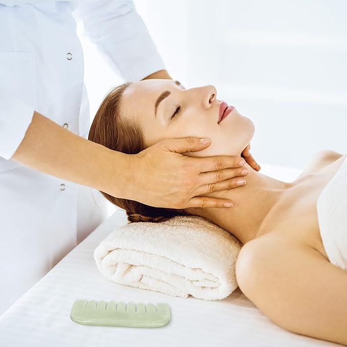 - Easy to carry: the jade massage comb is 3.5 inches long and 2 inches wide and each resin 7-tooth comb scraper has a length of 4.1 inches and a width of 2.1 inches; For convenience, there is a flannel bag provided to hold the 2 combs for you to carry around