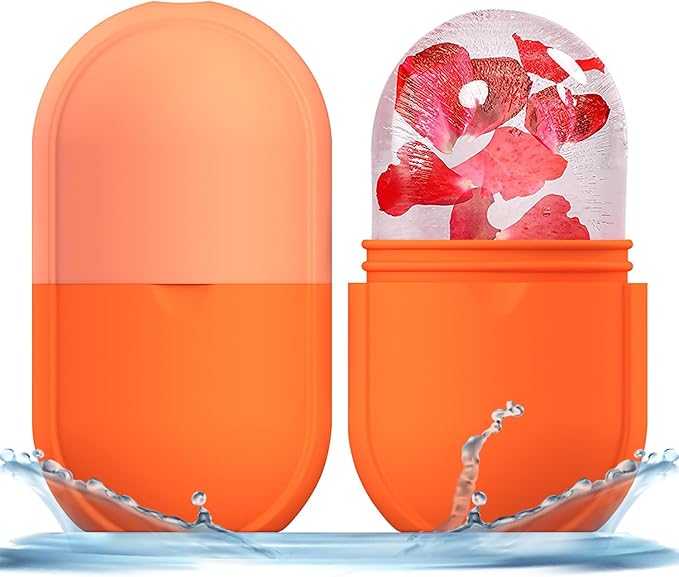 KOGITI Face Ice Roller & Mold - Beauty Facial Massage Tool for Puffiness Relief, Ice Cube Holder (New-Orange)