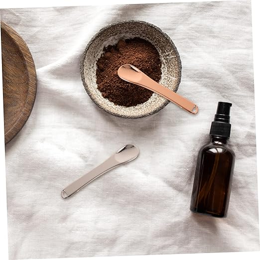 - Mini cosmetic spatula--there is a small hole at the end of the cream spoon to suspend it up for easy hanging and storage after use,cosmetic spatulas mini reusable