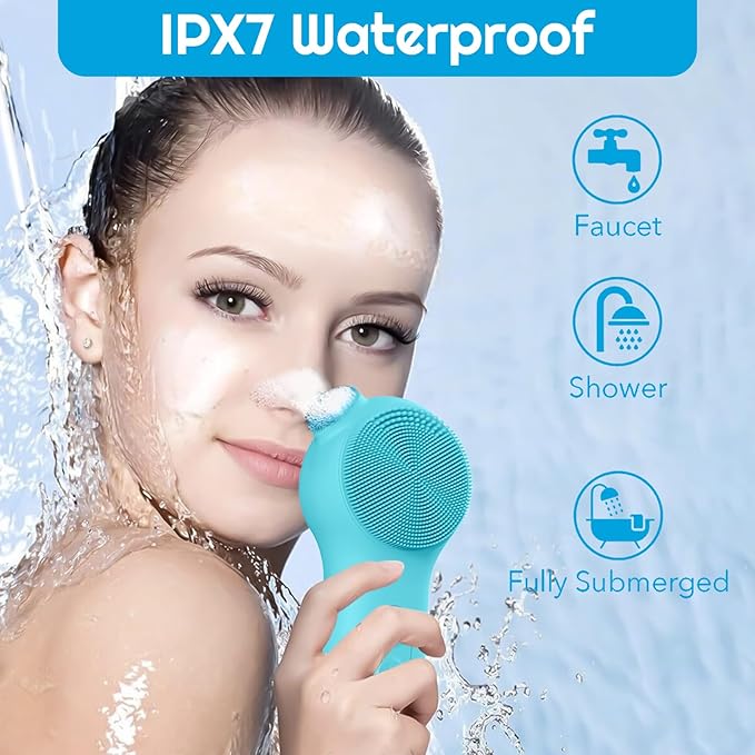 - 【Rechargeable and Waterproof Face Scrubber】The rechargeable vibrating face scrubber exfoliator has passed professional testing and achieved IPX7 waterproof, so it can be used safely while washing and showering, design an ergonomic handle comfortable to hold. The waterproof face brush is equipped with a sealed DC puncture charging port to prevent water and dust from entering, and with large capacity battery, the full charge can used for 40times. (3 minutes per use)