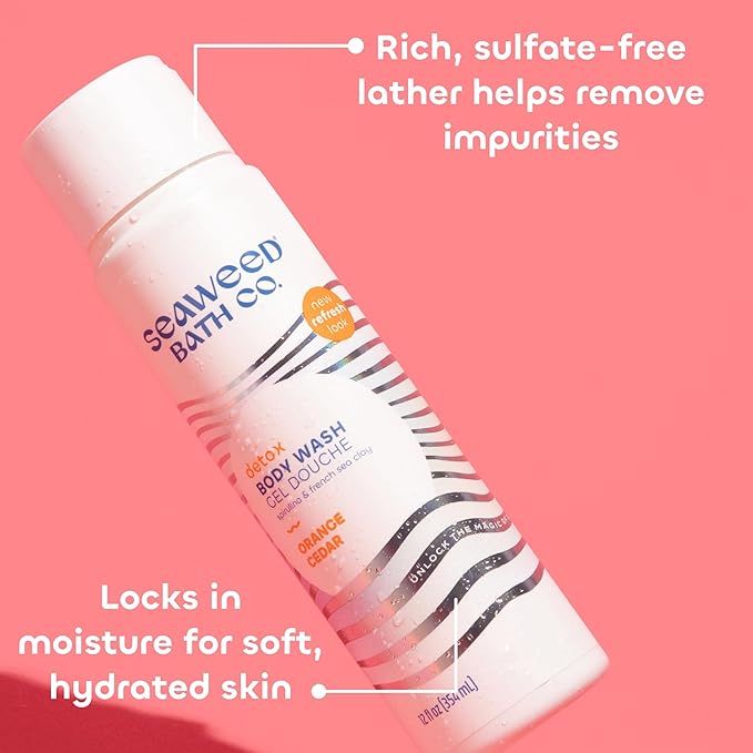 Seaweed Bath Co. Detox Body Wash, Orange Cedar Scent, 12 Ounce (Pack of 2), Shower Gel for Men & Women, Vegan, Paraben Free, Sulfate Free, Cruelty Free