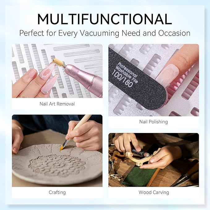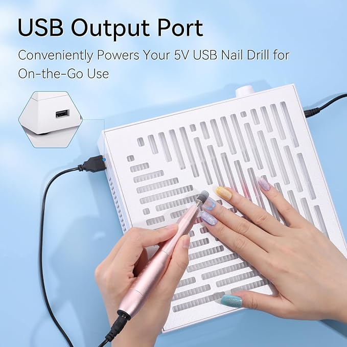 - Reusable Filter & Extra USB Port: Includes a magnetic cover and features a reusable filter for easy cleaning with a hairdryer or dust brush for easy maintenance and cost-effective long-term use. The USB output port powers a 5V USB nail drill machine, adding versatility.