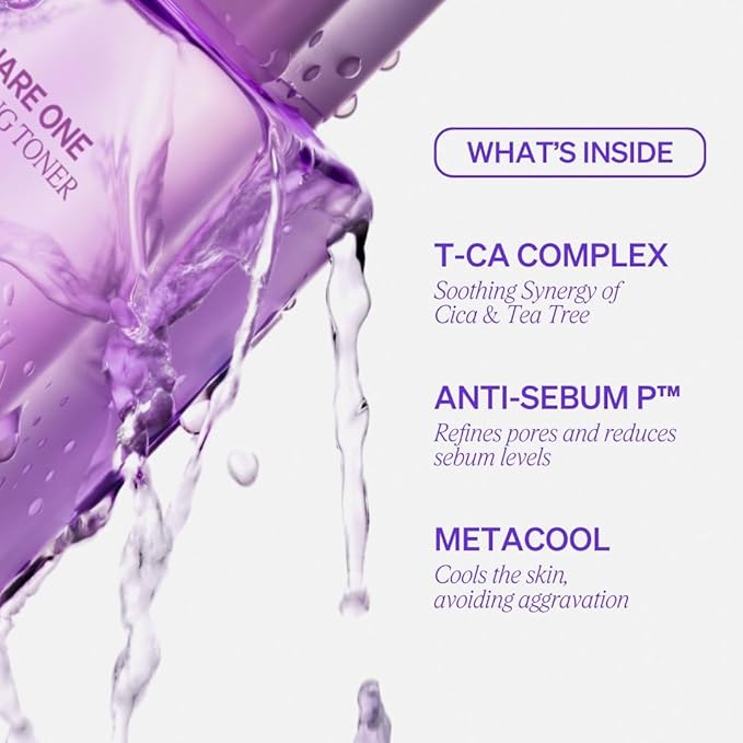 Square One Soothing Toner for Sensitive Skin with Calming CICA, Tea Tree, Anti-Sebum, Antioxidants, AHA, PHA, Niacinamide, Vegan, Cooling, Fragrance-Free | 5.07 fl oz β¦ 150ml