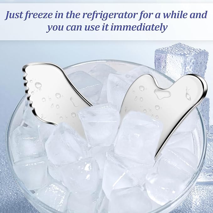 - 【Premium Quality】:Our gua sha tool is made of high quality stainless steel material, cold surface, smooth edges, durable, this facial massage tool is perfect for facial spa acupuncture, targeting specific areas of the face and body, which ensures a tighter skin while accurately massaging the face.