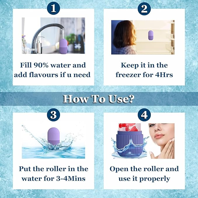 - EASY TO USE – NO MESS, JUST FRESH:- Fill the face ice mold with water or natural ingredients, freeze for 4+ hours, and roll across the skin in 30-second intervals. The ergonomic grip ensures easy handling, and the ice face roller glides smoothly without dripping. Use 1–2 times daily for best results.