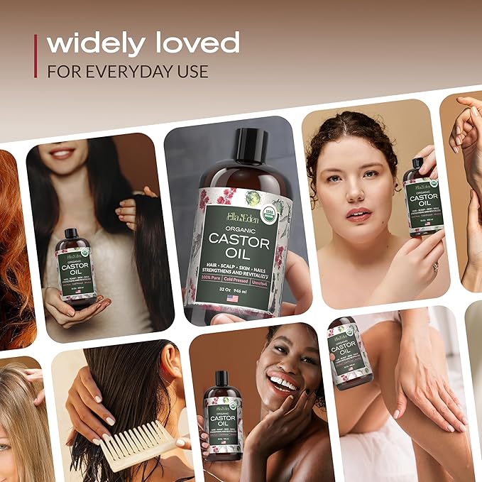 - Hair & Skin Nourishment: Our pure, cold-pressed organic castor oil is packed with fatty acids that deeply hydrate and moisturize dry skin. It effectively locks in moisture and smooths rough areas like elbows and knees, leaving skin soft & smooth.