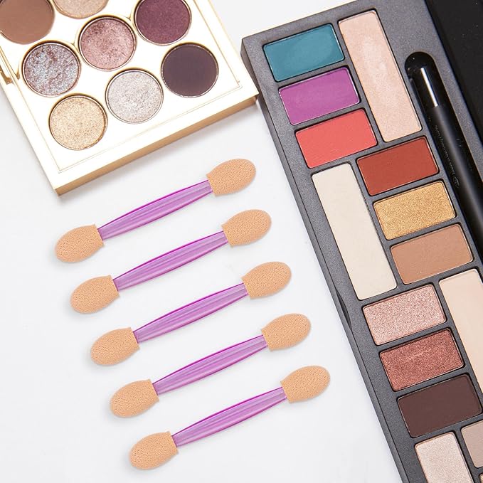 150 Eye Shadow Applicator Disposable Foam Makeup Brush Sponge Tipped Oval Eyeshadow Applicators Dual Sides with Container, Purple