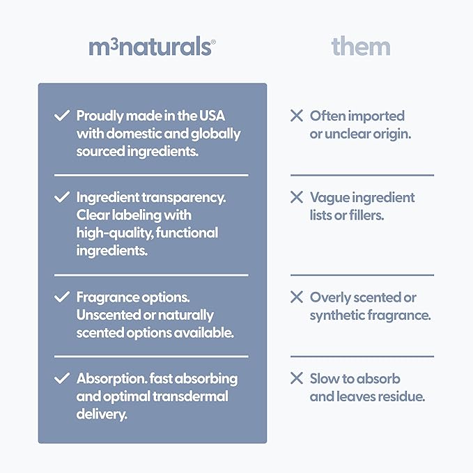 - Ethically Crafted Ingredients - M3 Lavender Magnesium Lotion is thoughtfully crafted using ethically sourced ingredients. Our formula is vegan, cruelty-free, paraben-free to ensure a clean and conscious self-care experience. M3 Naturals is a brand that contains products that contain natural ingredients and other ingredients.