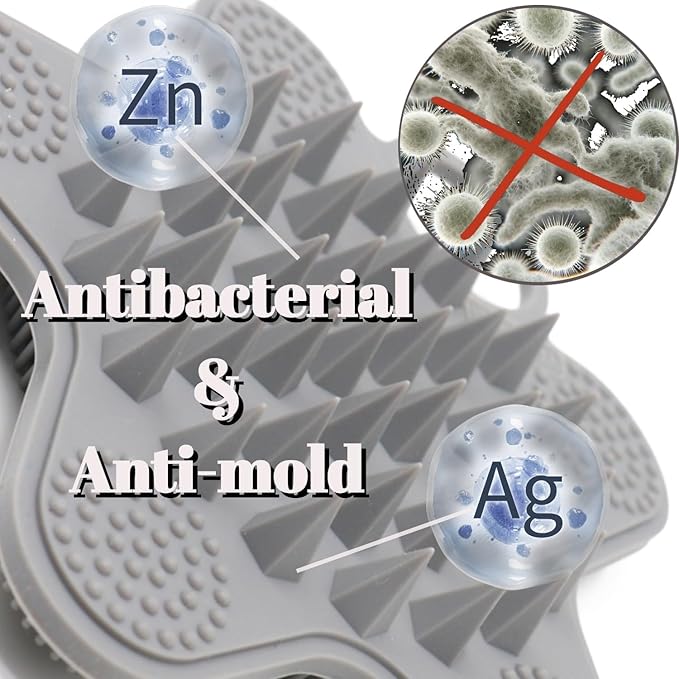 - HYGIENIC & HEALTHY: Compared to cheap silicone scrubbers that claim to be hygienic, our silicone bath brush has added silver and zinc. Takes the worry out of your brush hygiene