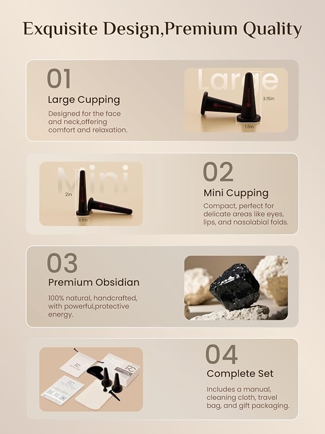 • WHAT YOU GET: Facial cupping therapy set *1, rose quartz gua sha board *1, instructions for use *1, cleaning cloth *1, portable travel bag *1, exquisite packaging*1