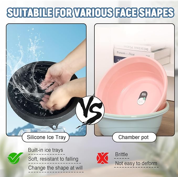 - Built-In Ice Tray: The ice facial folding washbasin features an integrated ice tray for effortless cooling—no extra tools needed. Freeze, pop out cubes, and enjoy a refreshing, revitalizing face dunk bowl ice experience