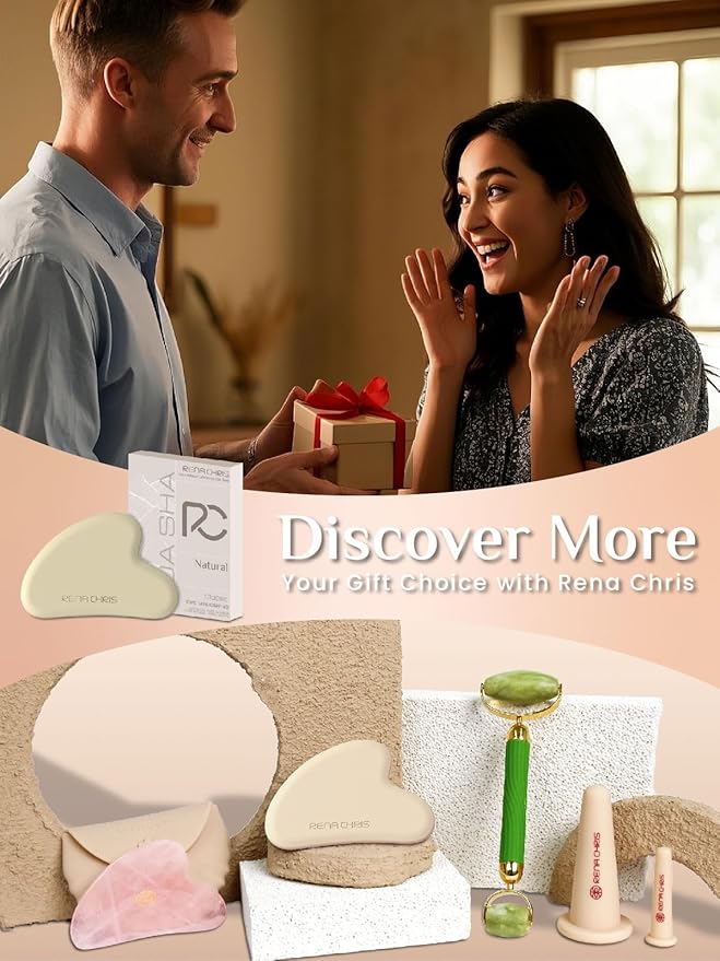 Rena Chris Gua Sha Facial Tools, Silicone Guasha Tool for Face and Neck Acupuncture, Facial Manual Massager Tool for Jawline Sculpting and Puffiness Reducing, Skincare Gift for Women