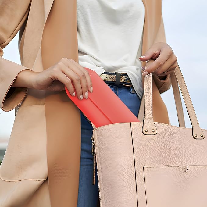Silicone Makeup Brush Holder Travel Cosmetic Bag:Soft Portable Cosmetic Face Brushes Holder with Upgrade Anti-Fall Out Magnetic Closure, Large Travel Makeup Brush Case - Guava