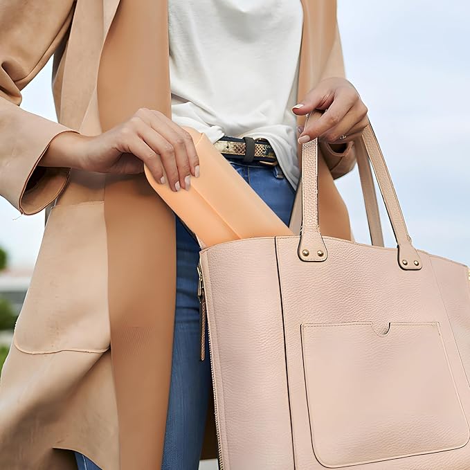 Silicone Makeup Brush Holder Travel Cosmetic Bag:Soft Portable Cosmetic Face Brushes Holder with Upgrade Anti-Fall Out Magnetic Closure, Large Travel Makeup Brush Case - Melon