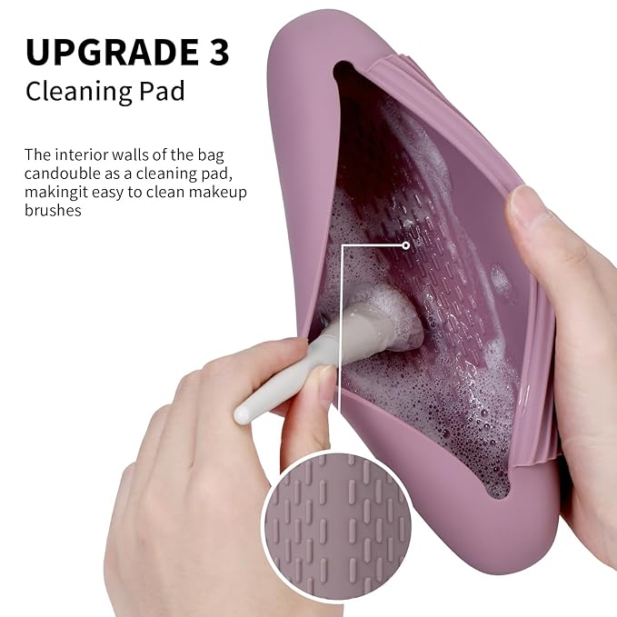 Silicone Makeup Brush Holder Travel Cosmetic Bag:Soft Portable Cosmetic Face Brushes Holder with Upgrade Anti-Fall Out Magnetic Closure, Large Travel Makeup Brush Case - Light Purple